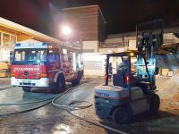 Aus noch ungeklärter Ursache kommt es in der Tischlerei zu einer Fehlfunktion der Heizungsanlage und dadurch zu einem Schwelbrand im Holzspäne-Silo. Die Schäden halten sich in Grenzen. Der gesamte Siloinhalt muss jedoch entfernt werden, was sich als sehr arbeitsintensiv gestaltet, obwohl der Silo nur zu 1/3 gefüllt ist. Mit Hilfe von Atemschutzträgern unter schwerem Atemschutz, eines Kleinbaggers und eines Staplers mit Ladeschaufel, wird der gesamte Spänesilo geleert. Das Material wird in Silonähe aufgeschüttet und mit Wasser durchtränkt, um alle Glutnester abzulöschen.