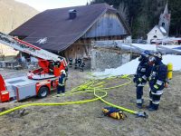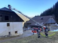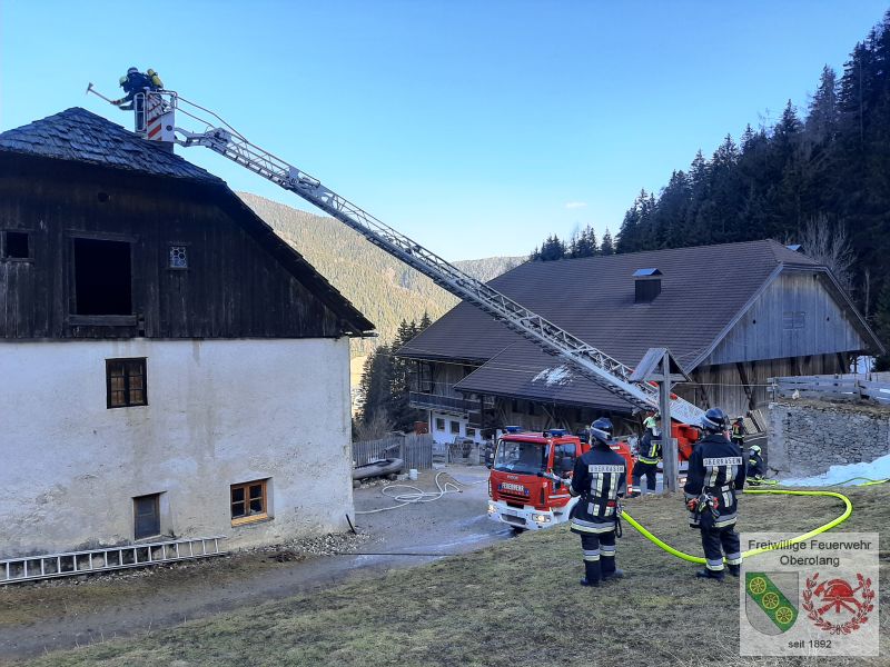Am Gebäude selbst entsteht durch den Brand nur geringer Sachschaden: das alte Schindeldach muss teilweise erneuert werden. Durch den sehr gezielten und besonnenen Löschwassereinsatz entstehen keine Löschwasserschäden! Mit Hilfe der Drehleiter Oberolang werden noch Glutnester abgelöscht und nach eingehender Kontrolle mittels Wärmebildkamera kann Brandaus gegeben werden. Anschließend wird mit Hilfe der Drehleiter am Dach noch eine Folie zur Abdichtung montiert.