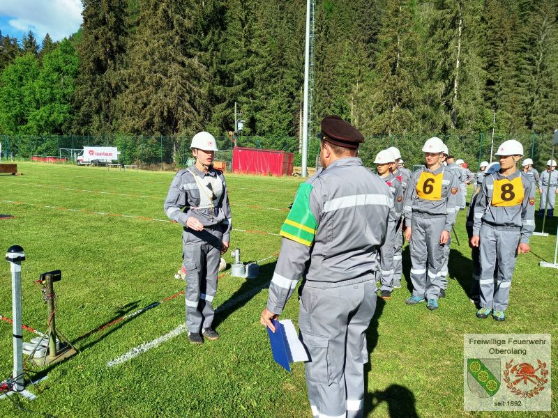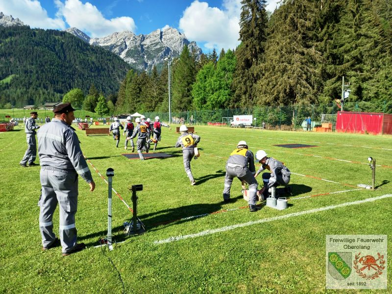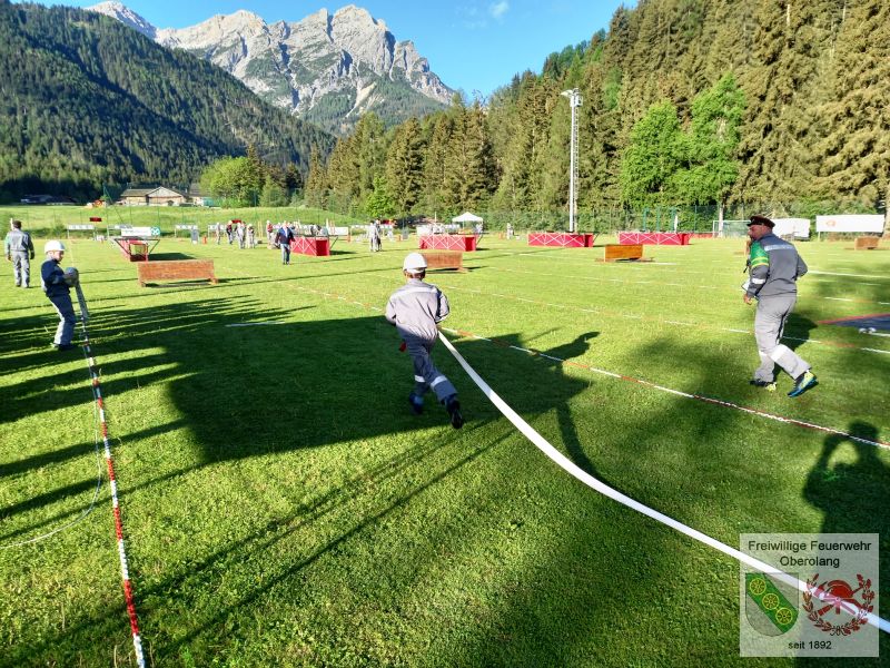 Bereits am fühen Morgen, um 06:30 Uhr geht es los. Am Bewerbsplatz angekommen, tritt man in den Disziplinen Bronze und Silber an den Start. Die Wetterverhältnisse an diesem Bewerbstag sind traumhaft. Die Angriffs- und Staffelzeiten sind beiden Disziplinen Bronze und Silber jeweils recht gut, jedoch leider nicht ganz fehlerfrei.