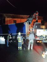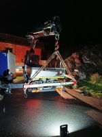 Nachdem ein Ab- und wieder Aufladen der Beladung als zu aufwändig erscheint, wird ein Kranfahrzeug der Privatfirma Wieser angefordert, welches ebenfalls über Taisten/Obergoste anfährt. Nach dem Positionieren des Kranfahrzeuges, wird das gesamte Heck des Sattelaufliegers angehoben und seitich wieder abgesetzt, sodass der Sattelzug nun fast in gerader Richtung steht. Dieser kann anschließend unbeschädigt seine Fahrt wieder fortsetzten und wir können ins Gerätehaus abrücken. Während der gesamten Arbeiten bleibt die Goste-Straße etwa 4,5h für den Verkehr gesperrt.