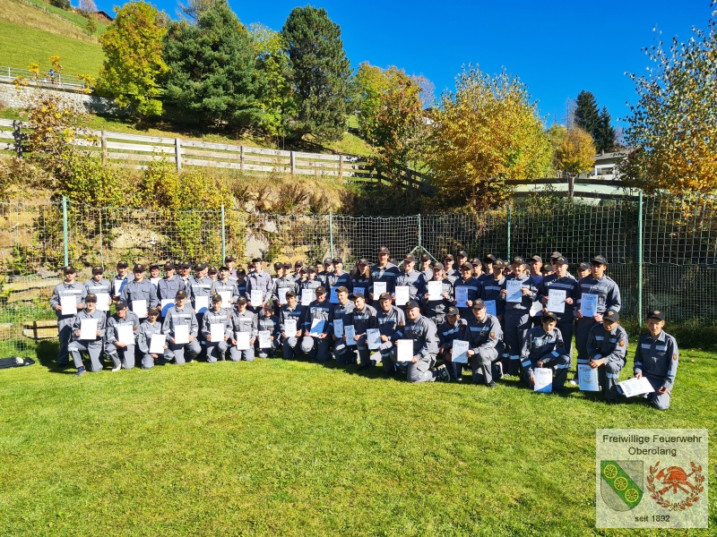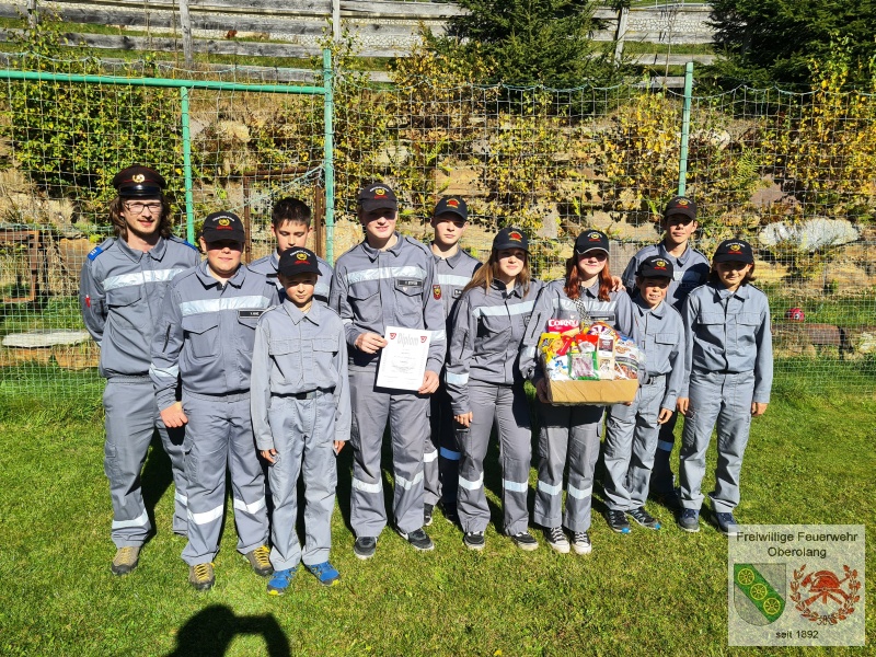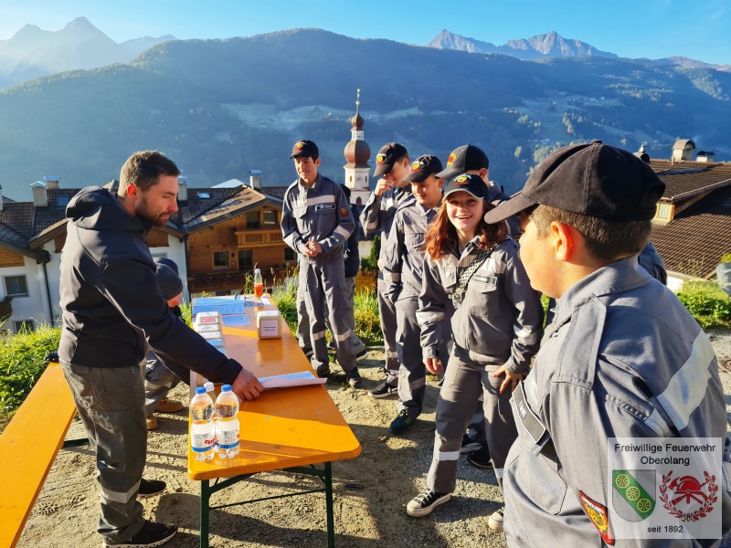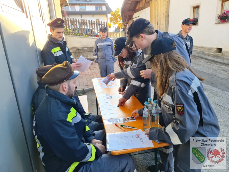Die danach folgende Jugendleistungsprüfung kann von allen Teilnehmern der Gruppe "Olang" erfolgreich abgeschlossen werden. Hierbei wird einiges Feuerwehr-Wissen abgefragt. Stifter Felix besteht erfolgreich die Stufe Gold.