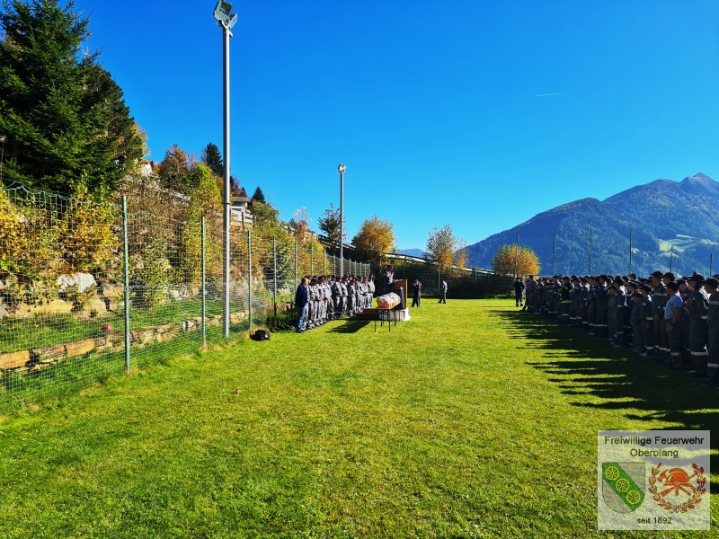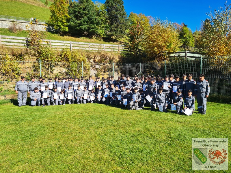 Nach dem Pfichtprogramm gibt es um 11:00 Uhr zum Mittagessen und danach erfolgt der Abschluss der Veranstaltung. Zunächst überbringen einige Ehrengäste ihre Grußworte, danach werden die Ergebnisse verkündet, und die Gold-Absolventen erhalten die begehrte Anstecknadel in Gold und das Diplom. Bei der Jugend-Challenge erringt die FF-Jugend Olang 2 den Tagessieg!! Die Gruppe Olang 1 platziert sich ebenfalls hervorragend auf Rang 13 (von 30). Bravo! Gratulation!