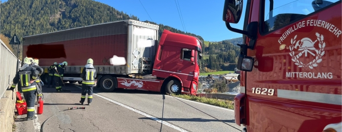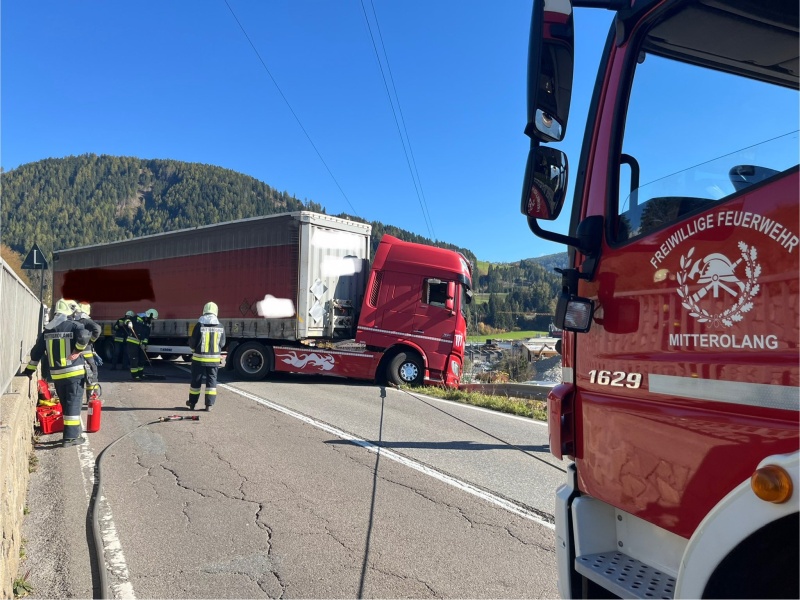 Auf der Pustertaler Hauptstraße hat sich kurze Zeit zuvor auf der Höhe der Industriezone Rasen-Olang ein Unfall zwischen einem PKW und zwei LKW's ereignet, ohne eingeklemmte Personen. Die Hauptstraße muss deshalb für längere Zeit komplett gesperrt bleiben. Angesichts des hohen Verkehrsaufkommens, bilden sich in der Folge erhebliche Verkehrsstaus in beide Richtungen.