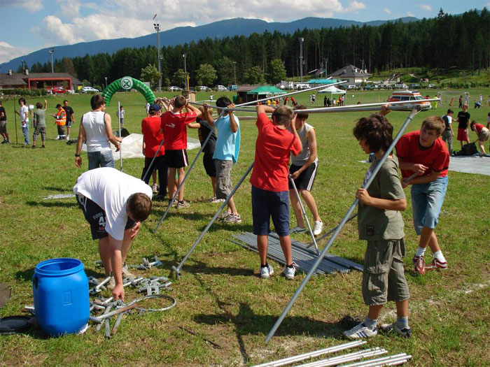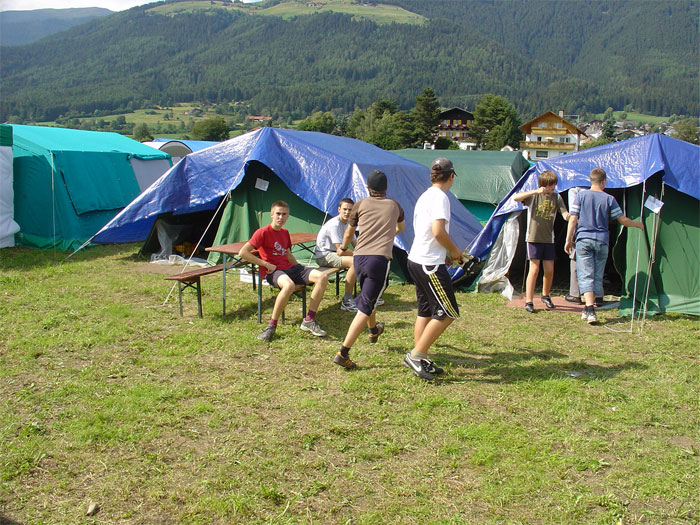 Am Sonntag folgte die Schlußveranstaltung mit dem Aufmarsch aller teilnehmenden Jugendgruppen aus Südtirol und dem Ausland mit ca. 1100 Jugendlichen, ca. 200 Betreuern und dem Bewerterstab. Nach dem Aufmarsch folgte das Aufräumen und Abbauen der Zelte, und nach dem Mittagessen trat man den Heimweg an. Erschöpft, durch viel Geleistetes und etwas wenig Schlaf, aber zufrieden, beendete man das diesjährige Zeltlager. Ein Dank gilt an dieser Stelle den Betreuern Hubert, Gerhard und Partrick, die - wie so oft - etliche Stunden Freizeit für unsere Jugend geopfert haben. Danke.