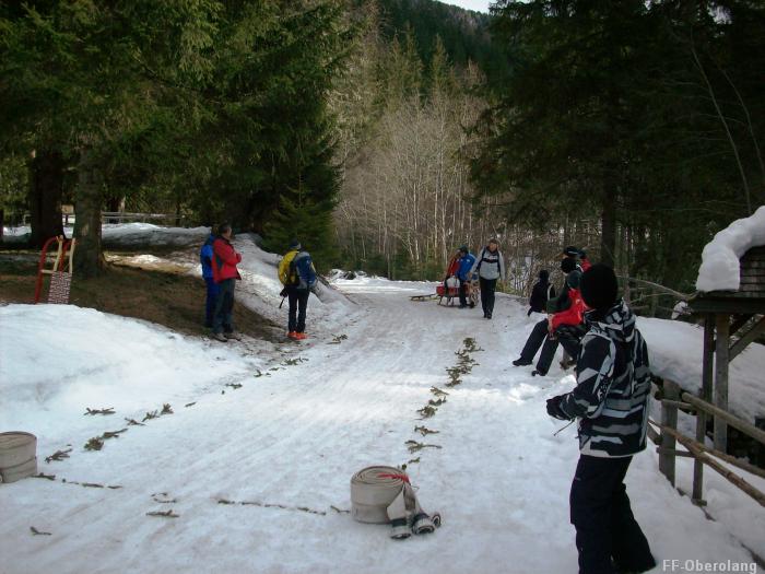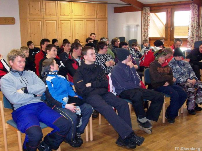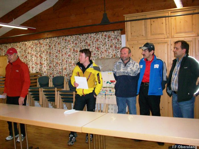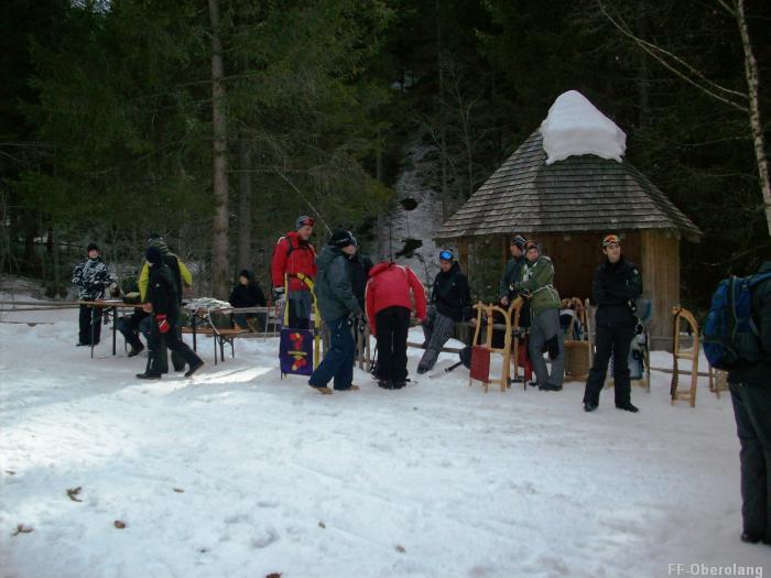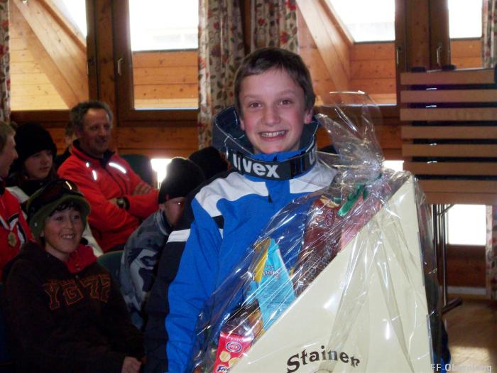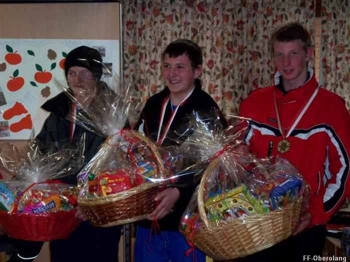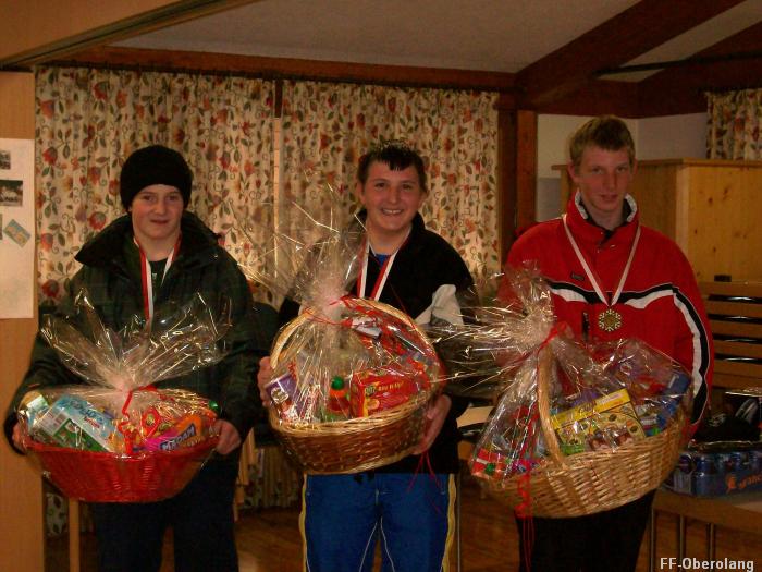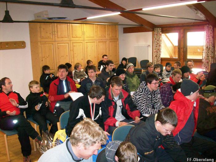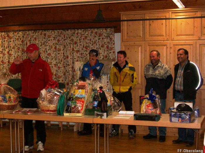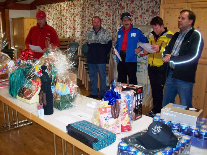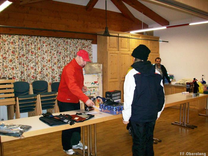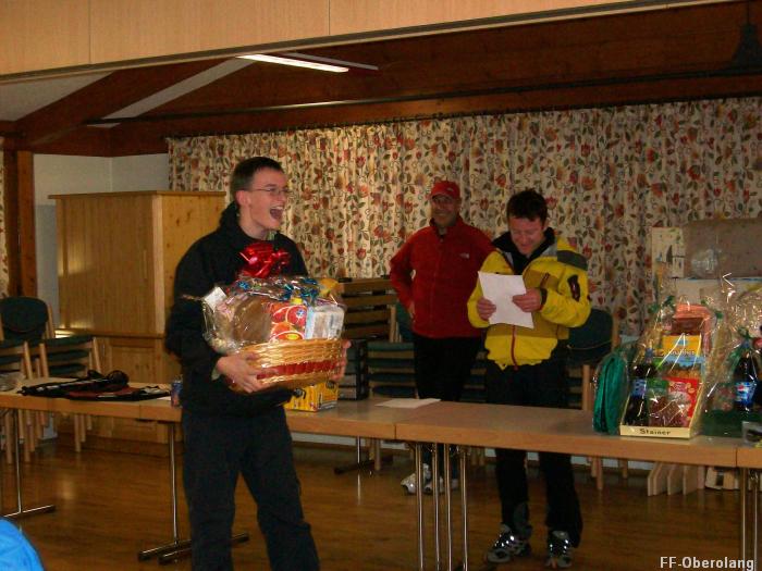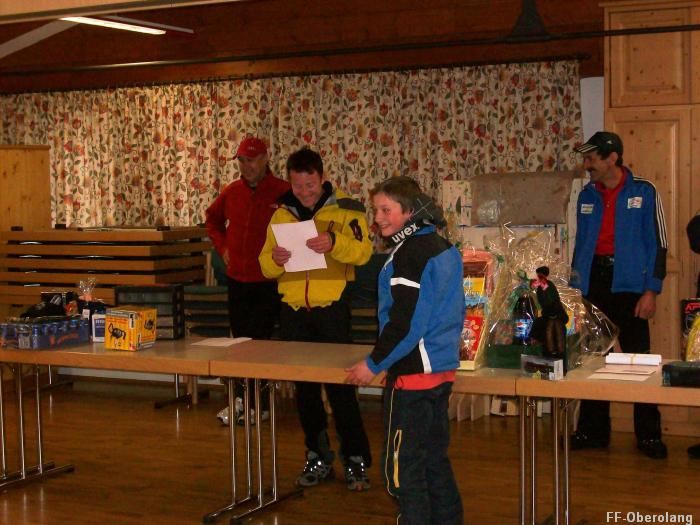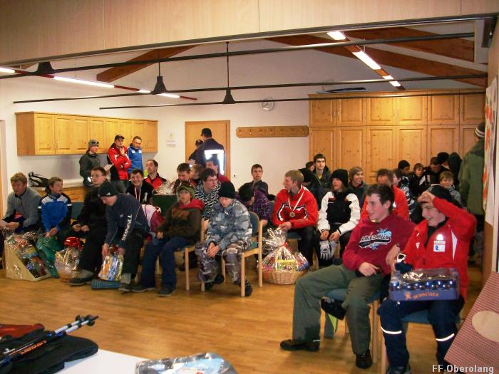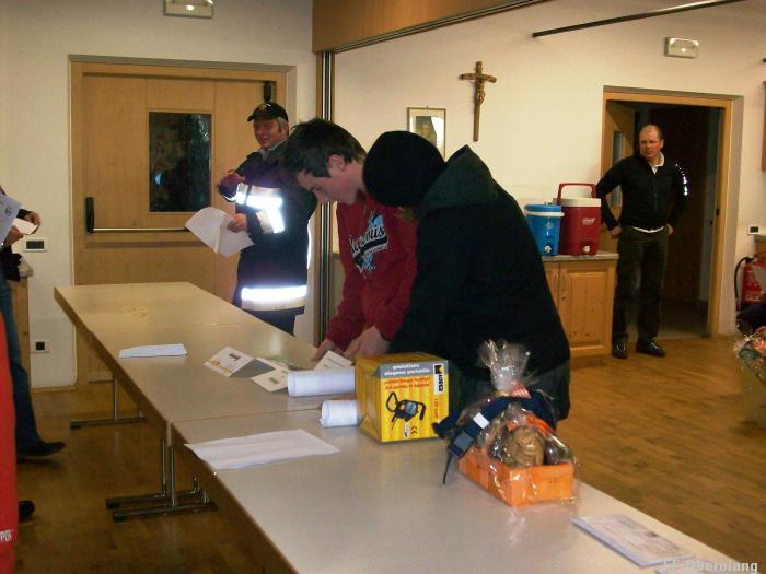 Natürlich sind alle Jugendlichen unfallfrei durchs Ziel gerodelt und wohlbehalten ange-kommen. Nachdem der Zieleinlauf aller Teilnehmer abgewartet wird, begiebt man sich in das Obergeschoss unseres Gerätehauses, wo sogleich auch die Siegerehrung statt-findet. Unser Kommandant Anton Schenk, der Landesjugendreferend Peter Volgger und der Bezirksjugendreferend Peter Thomaser sprechen noch einige Gruß- und Dankesworte zur Ansprache und gehen zur Preisvergabe über: jeder Teilnehmer kann sich in der Reihenfolge der Platzierung einen Sachpreis auswählen. Anschießend wird der Rodelaus-flugstag beendet und alle Teilnehmer treten wieder die Heimfahrt an.