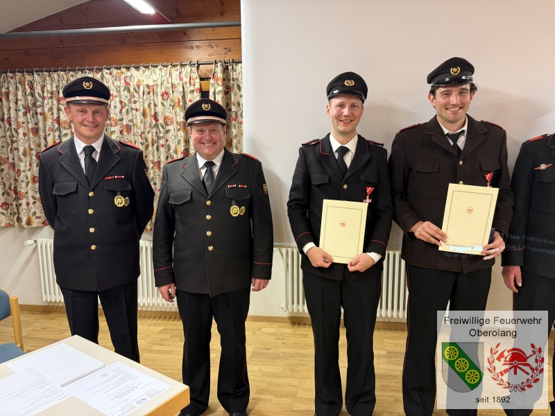 Besonders erfreulich ist die Angelobung von einem neuen aktiven Mitglied unserer Wehr: es ist Schöpf Laurin. Ein weiterer wichtiger Tagesordnungspunkt ist die Ehrung von zwei langjährigen Mitgliedern unserer Wehr: für 15 Jahre aktiven Feuerwehrdienst wird an Jud Fabian Jud und an Preindl Ivan das Verdienstkreuz in Bronze durch die Feuerwehr Oberolang verliehen. Zwei weitere Ehrungen werden heuer beim Bezirksfeuerwehrtag durch den Landesfeuerwehrverband durchgeführt.