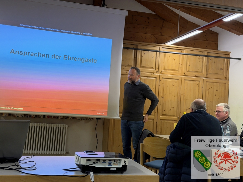 Am Samstag, den 28.02.2026, hält die Freiwillige Feuerwehr Oberolang ihre Jahreshauptversammlung ab. Der Kommandant Werner Töchterle kann neben den Ehrengästen, darunter Pfarrer Rüdiger Weinstrauch, der Bürgermeister der Gemeinde Olang Lukas Schnarf, der Vice-Bürgermeister Christoph Reden, der Bezirksfeuerwehrpräsident Peter Hellweger, der Abschnittsinspektor Christof Niedermair, den Leiter des Bergrettungsdienstes Olang Hannes Daverda, die Gemeindereferentin Elisabeth Plaikner, der Vorstand der Fraktionsverwaltung Oberolang Georg Untergassmair, die zahlreich erschienenen Aktiven Mitglieder, die Mitglieder Ausser Dienst und die Jugendfeuerwehr der Freiwilligen Feuerwehr Oberolang, zur diesjährigen 134. Jahreshauptversammlung, begrüßen.
